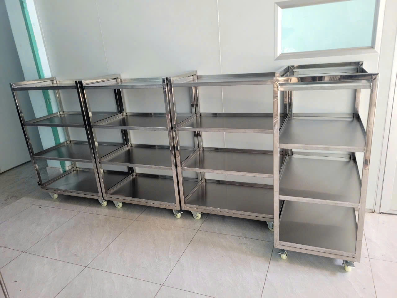 Bàn sơ chế inox, kệ inox, giá inox để dụng cụ