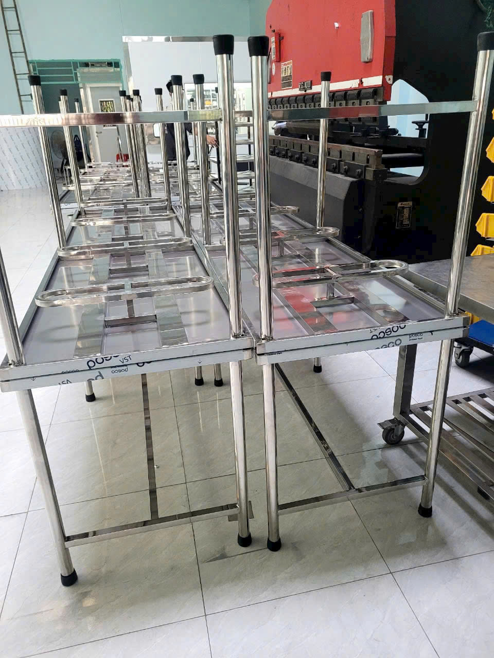 Bàn ghế inox được thiết kế với khung chân chắc chắn, chịu được tải trọng lớn, ít cong vênh hay biến dạng trong quá trình sử dụng lâu dài, kể cả khi đặt các vật nặng.